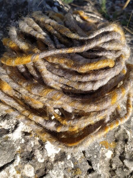 Laine de nos petits moutons : pelotes, filages-tissages (teintures végétales).