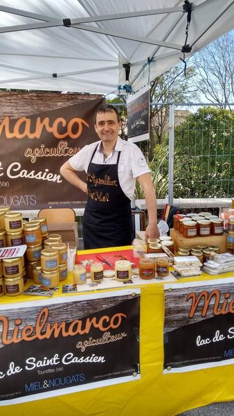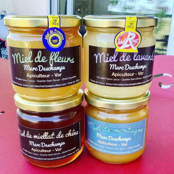 " A l'âge de 18 ans déjà, j'avais hésité à devenir apiculteur. J'ai privilégié l'aéronautique. En 2011, ma passion des abeilles est réapparue. J'offre à mes ruches le meilleur bol alimentaire sur des terrains sauvages. Vous proposer des miels et nougats aux saveurs de notre belle région, telle est mon ambition. " Marc Deschamps
