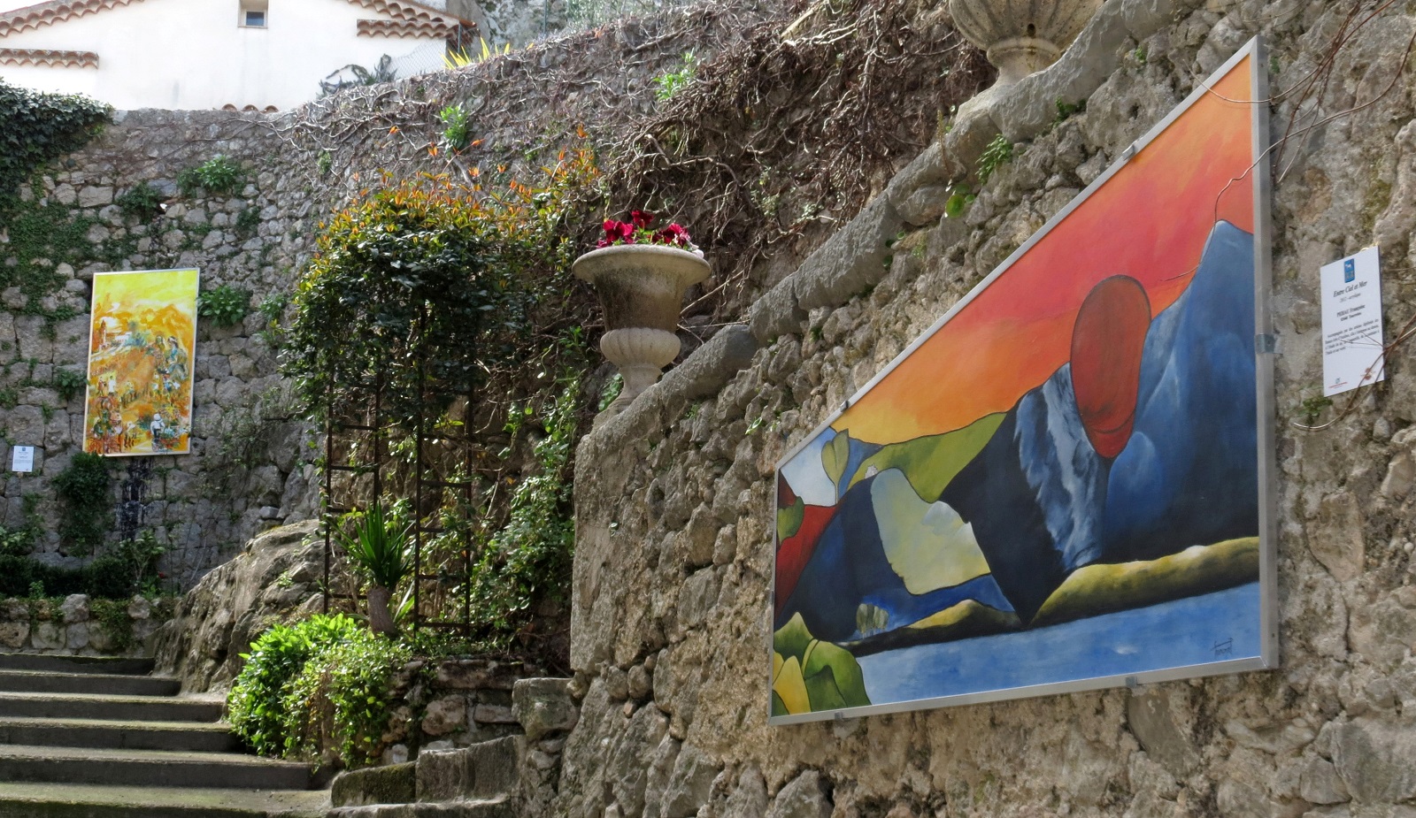 Empruntez les petits escaliers aux rampes multi-centenaires, entrecoupés de passages voûtés, tournez en rond, perdez-vous dans les ruelles ainsi que dans l’imaginaire de la centaine d’ artistes qui a investi les murs et les portes du village constituant ainsi un musée à ciel ouvert à découvrir en toute liberté.