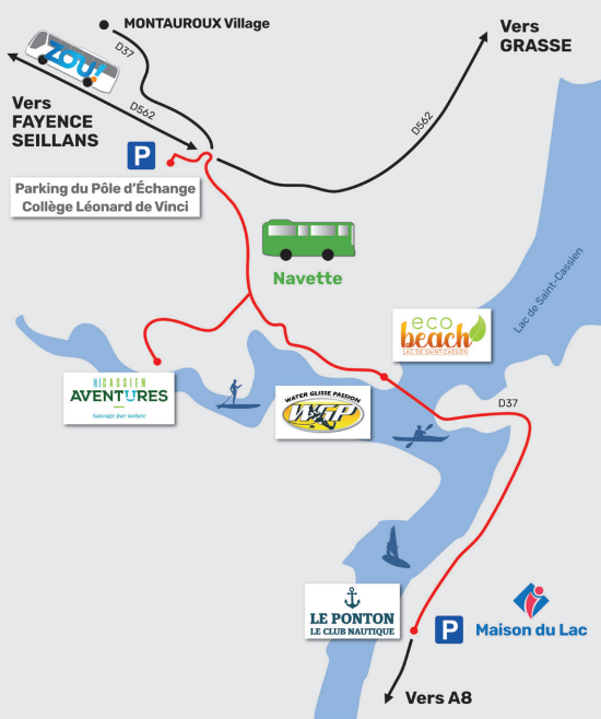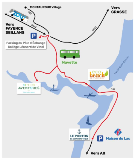 Profitez du lac de Saint-Cassien, avec un stationnement facile, sécurisé et gratuit ! La navette du lac de Saint-Cassien fonctionne tous les jours.