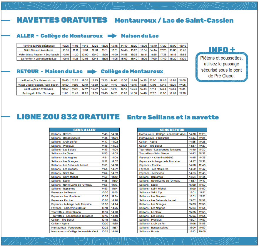 Du 5 juillet au 31 août 2025, une navette gratuite est à votre disposition pour vous déposer à différents points autour du lac de Saint-Cassien.