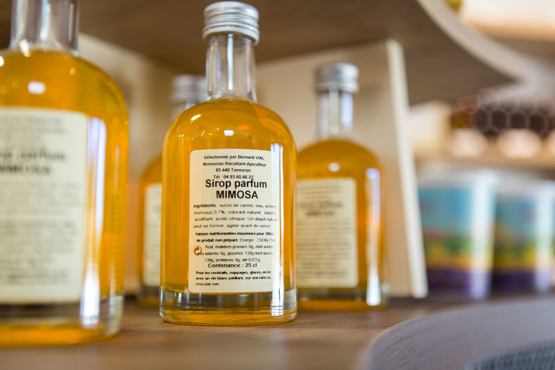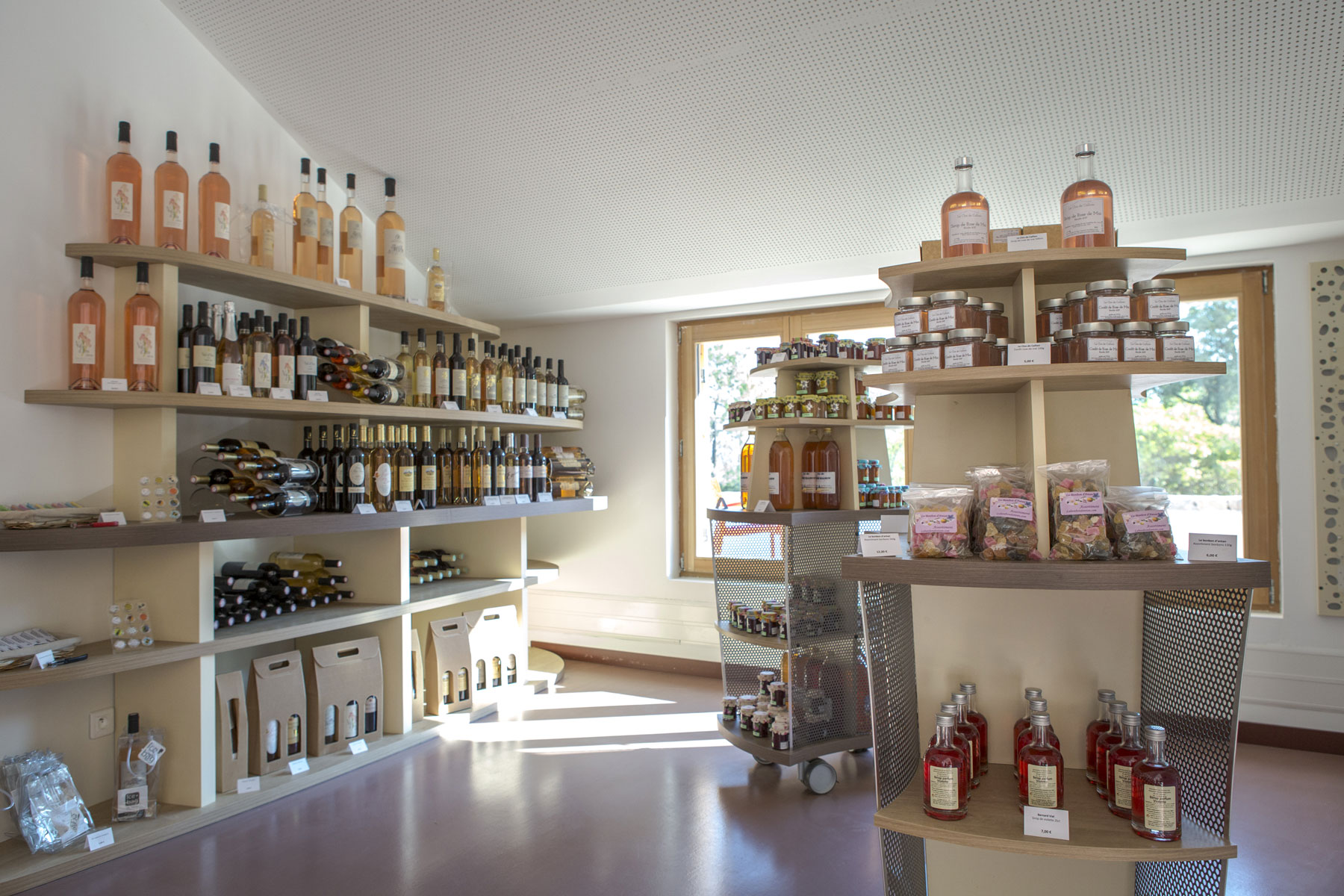 Un large choix de nos producteurs locaux : miels, huile d’olive, sirops, biscuits, vins, bonbons, confitures, confit de rose…mais aussi des savons, des parfums, des poteries artisanales, etc.