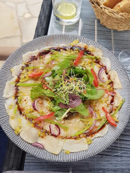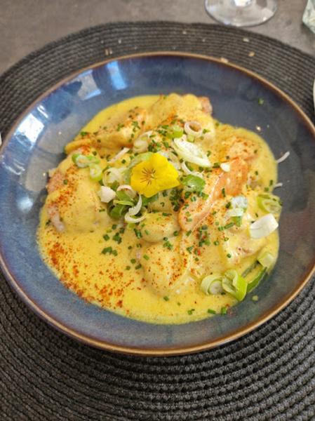 La cuisine est concoctée par les mains expertes et délicates de la Cheffe d'Anne-Laure Ricco, faite de produits frais et de qualité.