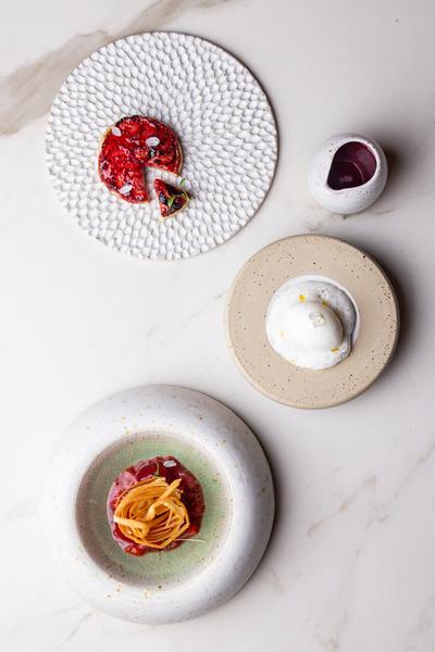 Le Chef a fait appel au talent de la céramiste tourrettane Magali Barraja qui a imaginé et créé les Arts de la Table pour vous faire vivre une expérience 100% locale.