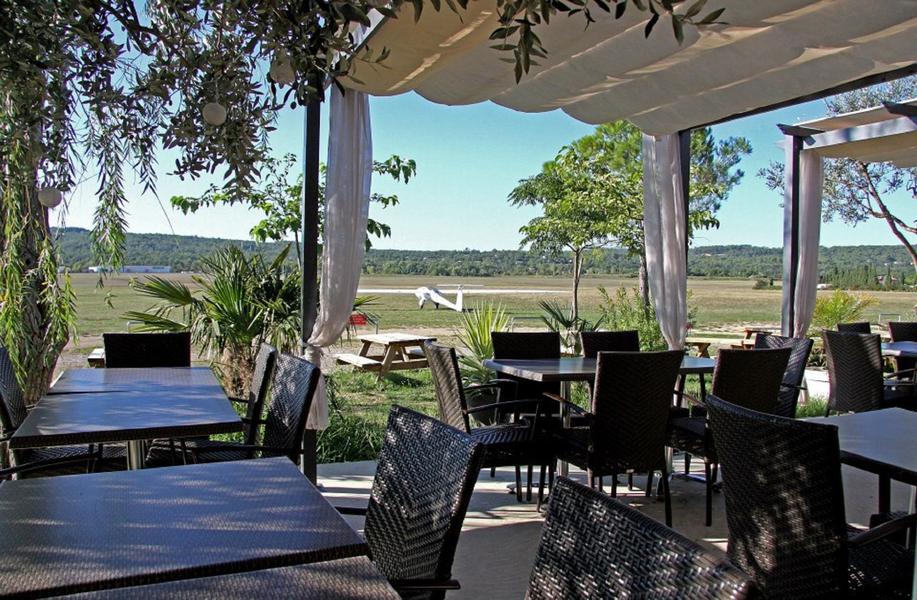 Au pied de l’aérodrome, installé sur la grande terrasse ombragée, vous assisterez au ballet des planeurs voltigeant au dessus de cet écrin de verdure.