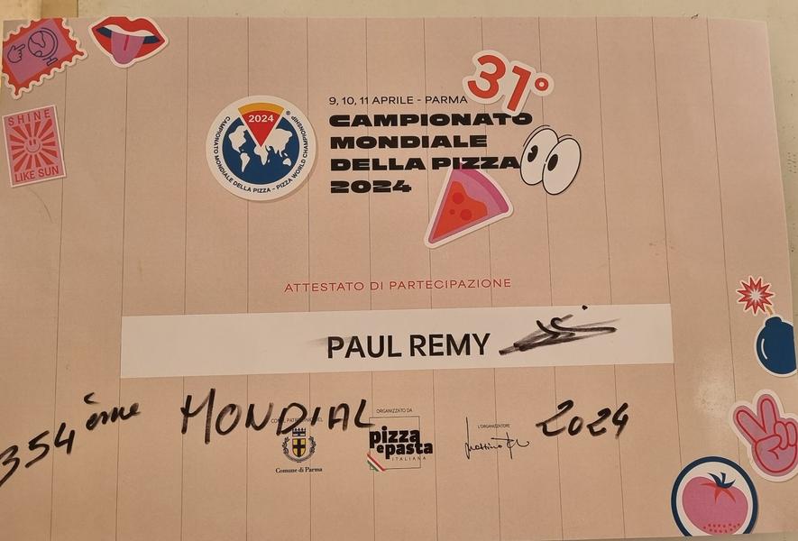Paolo Pizza se classe au 17ème rang Régional au Championnat de France de la Pizza et 354 ème au Concours mondial de la Pizza à Parme en Italie en 2024.