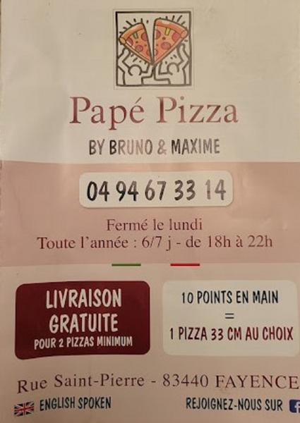 Au cœur du village de Fayence dans le Var, à coté du boulodrome et des parkings, le tandem Bruno et Maxime vous propose sa belle gamme de pizzas à la garniture généreuse, fabriquées et cuites sur place, à emporter ou livrées à domicile dès 2 achetées.