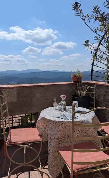 en salle, sur la place et aussi sur la terrasse donnant sur un panorama exceptionnel :