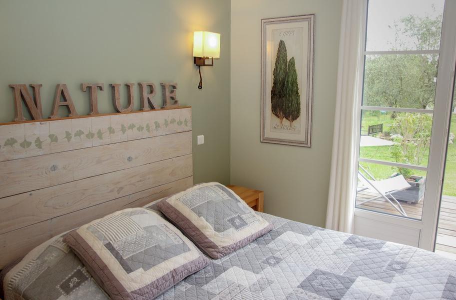 Gîte tout équipé, avec une chambre lit double 160 x 200 et salle de bain, salon avec 2 lits simples 90 x 190, cuisine équipée, draps et serviettes fournies dans une grande propriété.